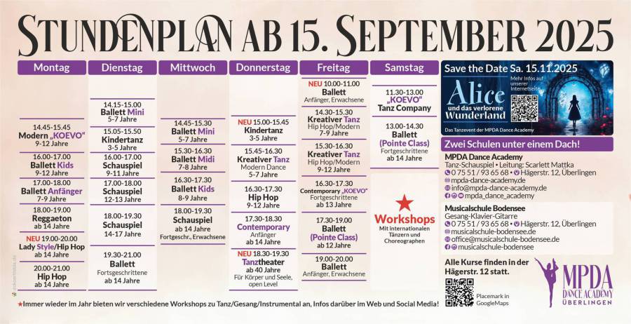 Für Probetermin bitte zuerst im Sekretariat anrufen und nachfragen, ob ein Platz für den gewünschten Kurs noch frei ist. Bei Gefallen können Sie den Anmeldevertrag auch online ausdrucken und zum nächsten Unterricht ausgefüllt mitbringen. Wir freuen uns auf Sie:-).